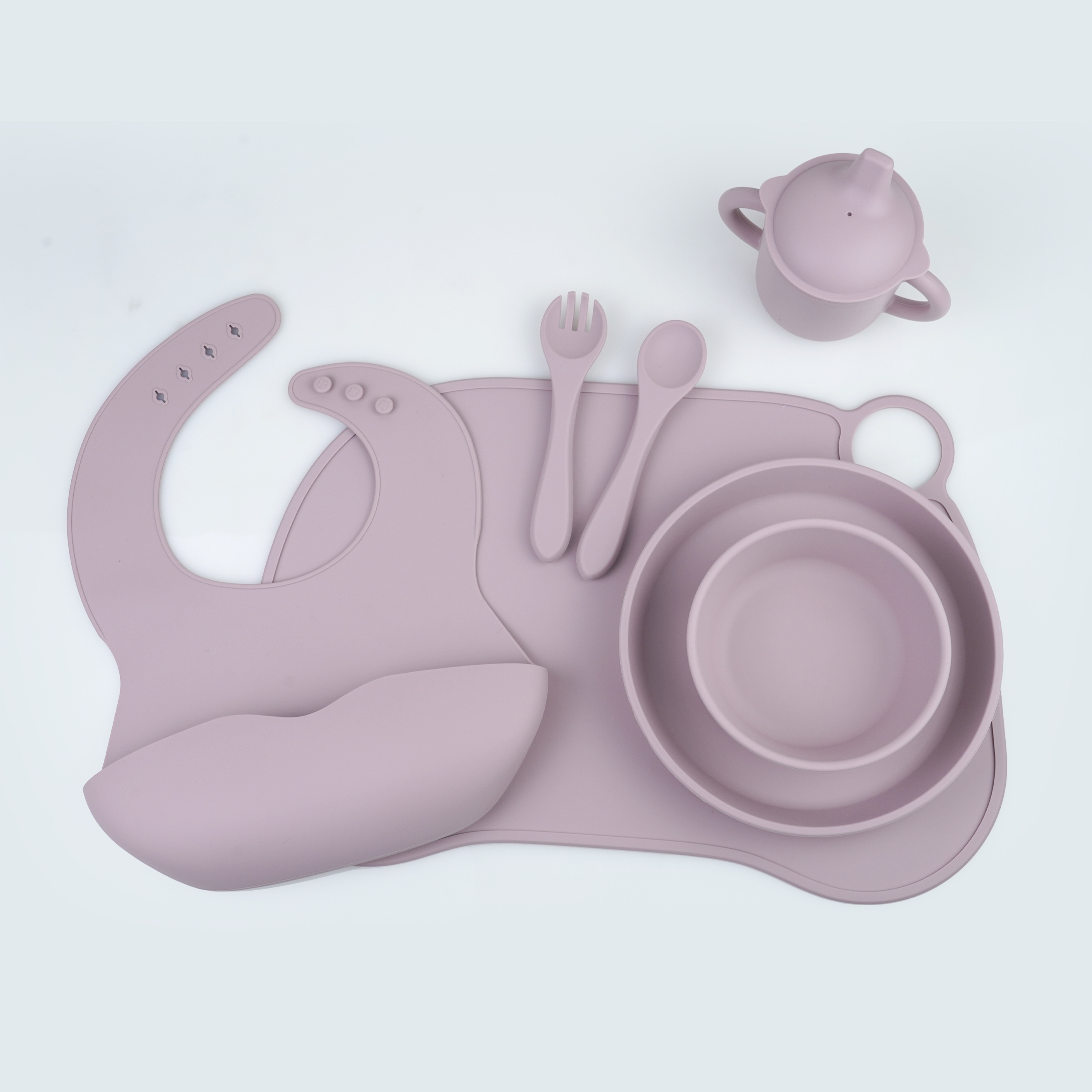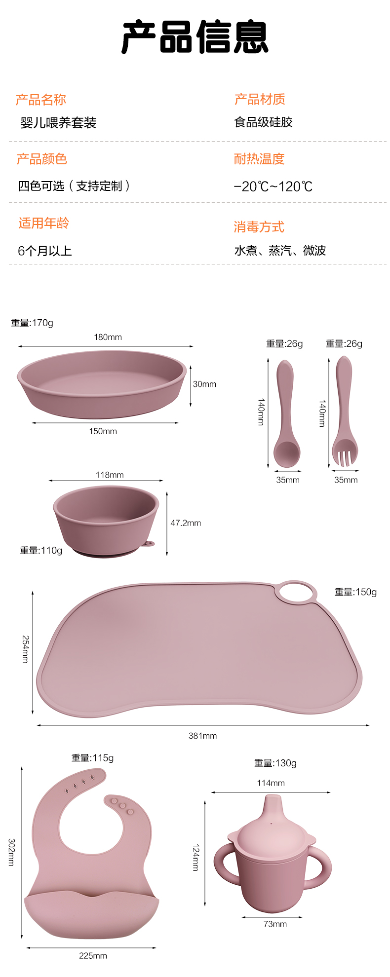 口水兜+碗+叉勺+餐盤+學(xué)飲杯+餐墊