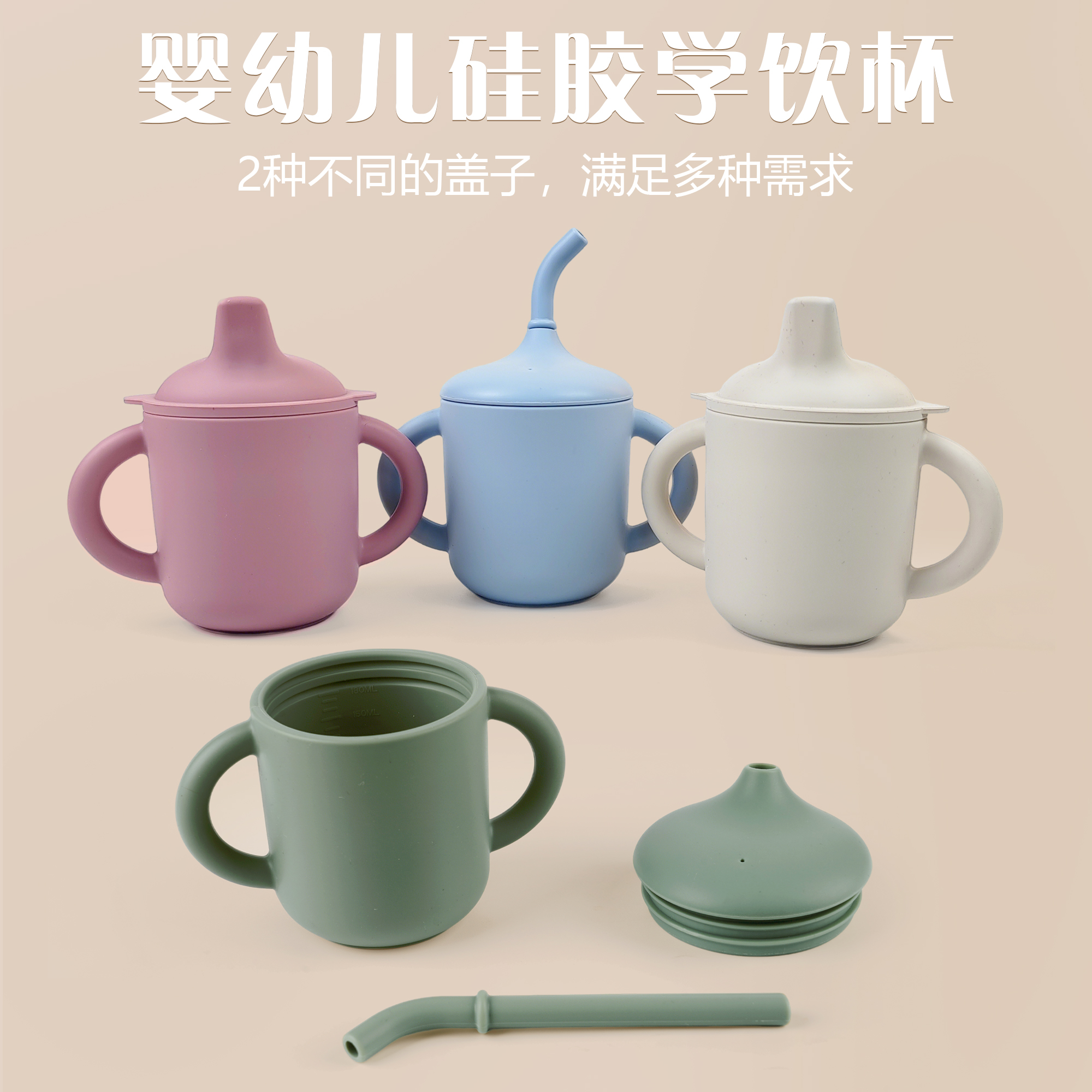 寶寶硅膠直飲鴨嘴杯喝水杯雙耳學(xué)飲杯雙蓋合一