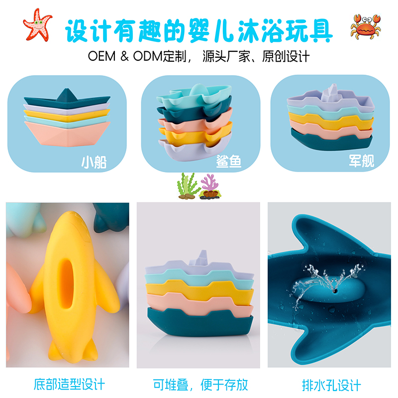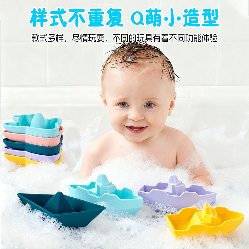 亞馬遜跨境兒童沐浴可愛小船玩具創(chuàng)意戲水玩具寶寶硅膠洗澡玩具