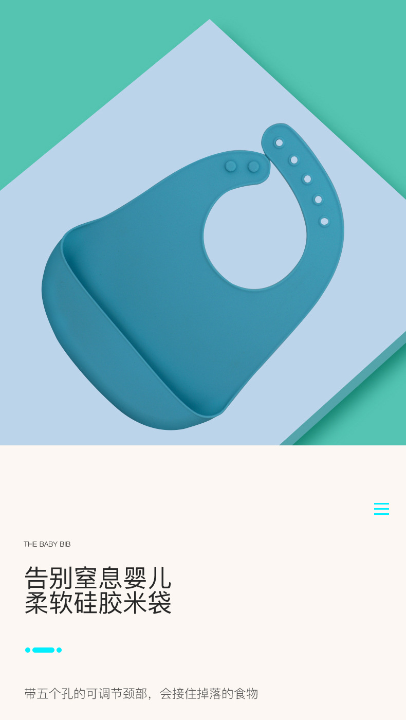 科泰利所生產(chǎn)的硅膠圍嘴兜,選用食品級(jí)環(huán)保原材料制作,材質(zhì)可以信賴,它由科泰利硅膠制品廠家經(jīng)過(guò)200多度高溫加工成型,耐溫防水防油,清潔方便,水沖即可,可以反復(fù)使用。而且硅膠圍兜現(xiàn)在普遍采用3D立體設(shè)計(jì),凹槽可以輕松兜住食物,這樣的設(shè)計(jì)就是在存放的時(shí)候比棉質(zhì)占空間。此外硅膠除了作為圍嘴兜也一樣可以做其他嬰童硅膠制品。