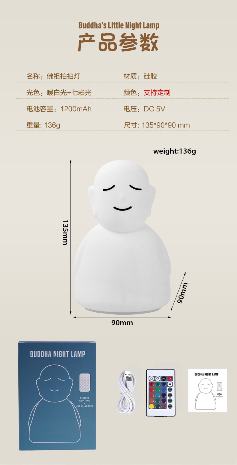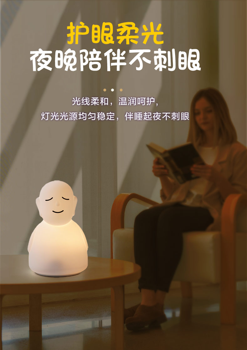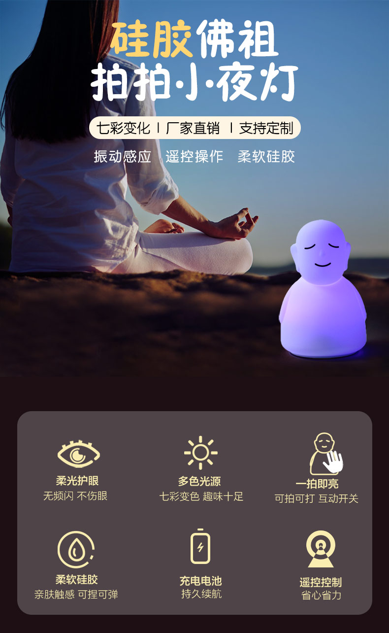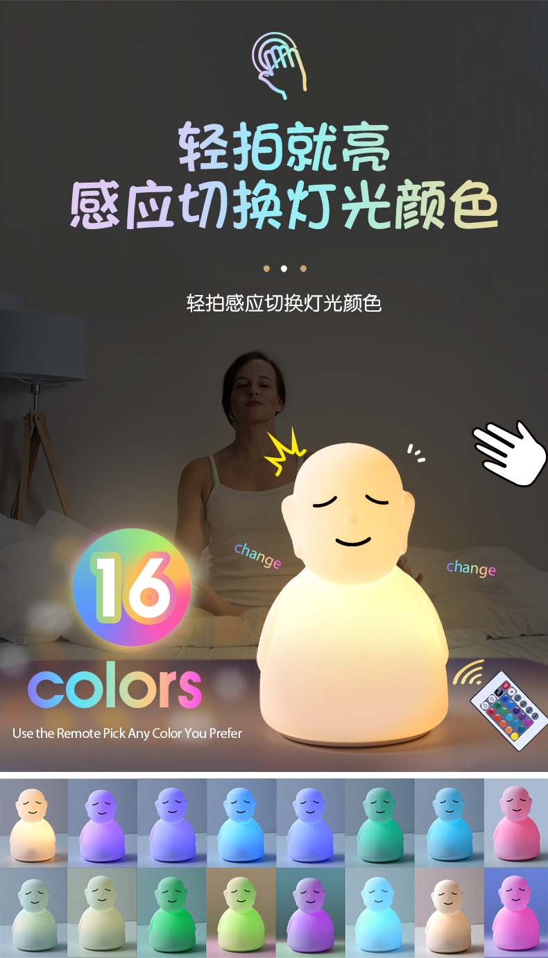 跨境LED硅膠拍拍佛主小夜燈夜間寶寶安撫睡拍拍燈遙控器感應(yīng)照明