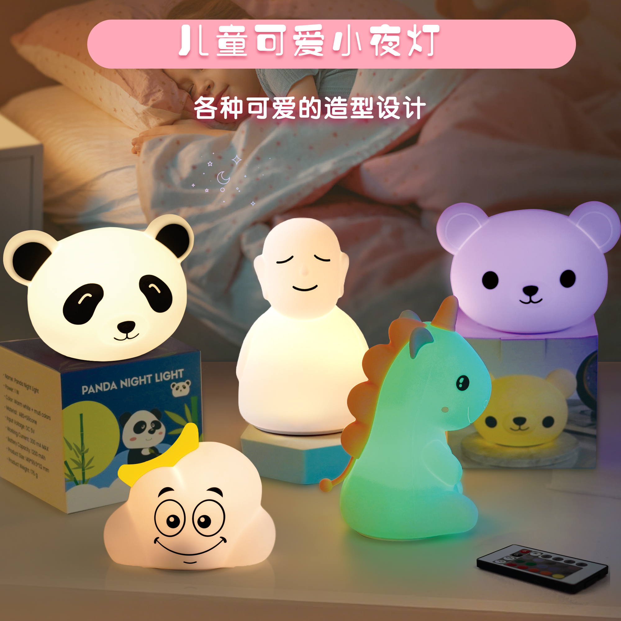 您的位置:首頁 > 產(chǎn)品中心 > 硅膠家居用品 > 拍拍燈 > 卡通造型柔光燈硅膠拍拍拍拍燈兒童護眼小夜燈